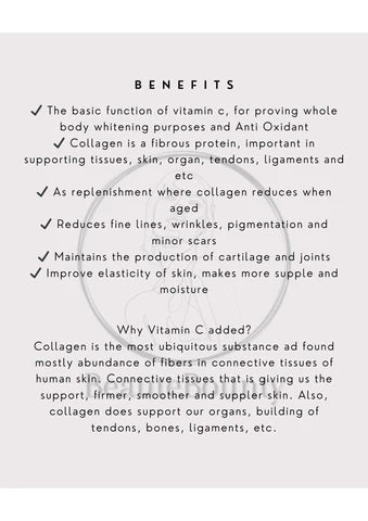 ✔️ The basic function of vitamin c, for proving whole body whitening purposes and Anti Oxidant