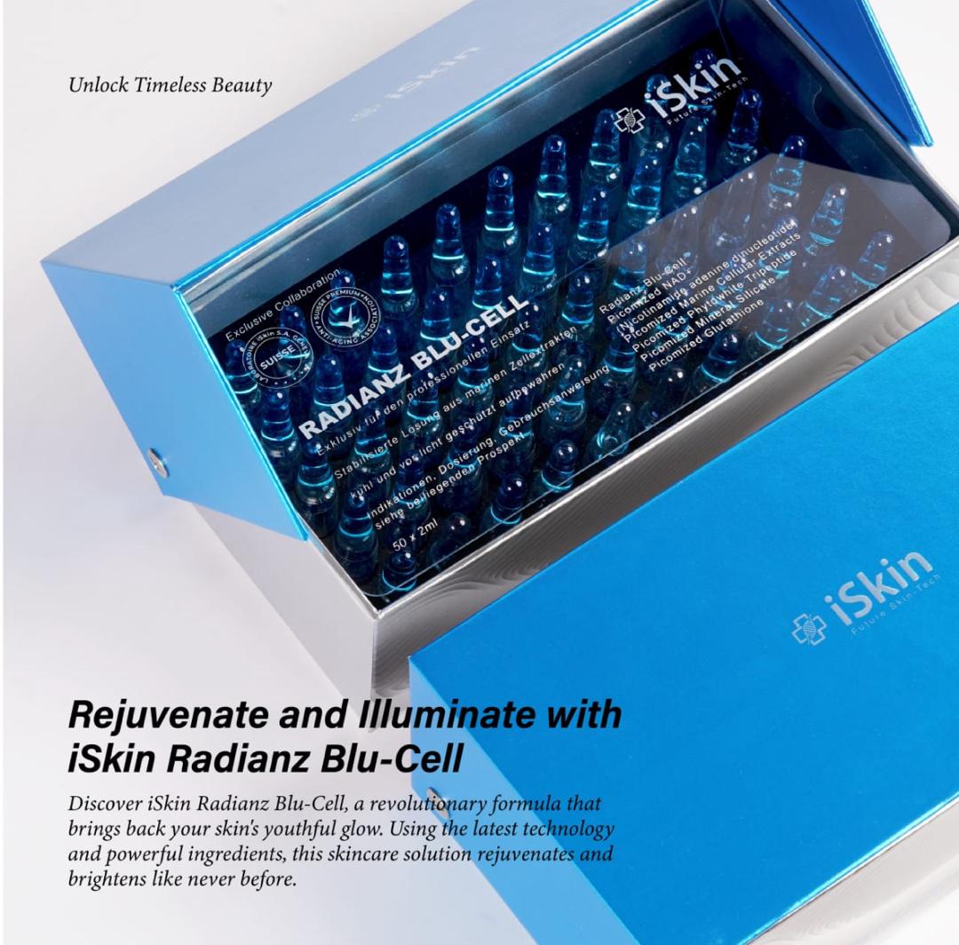 Discover iSkin Radianz Blu-Cell, a revolutionary formula that brings back your skin’s youthful glow. Using the latest technology and powerful ingredients, this skincare solution rejuvenates and brightens like never before.