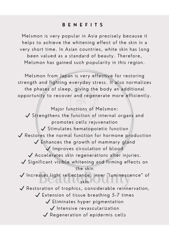 Melsmon is very popular in Asia precisely because it helps to achieve the whitening effect of the skin in a very short time. In Asian countries, white skin has long been valued as a standard of beauty. Therefore, Melsmon has gained such popularity in this region.