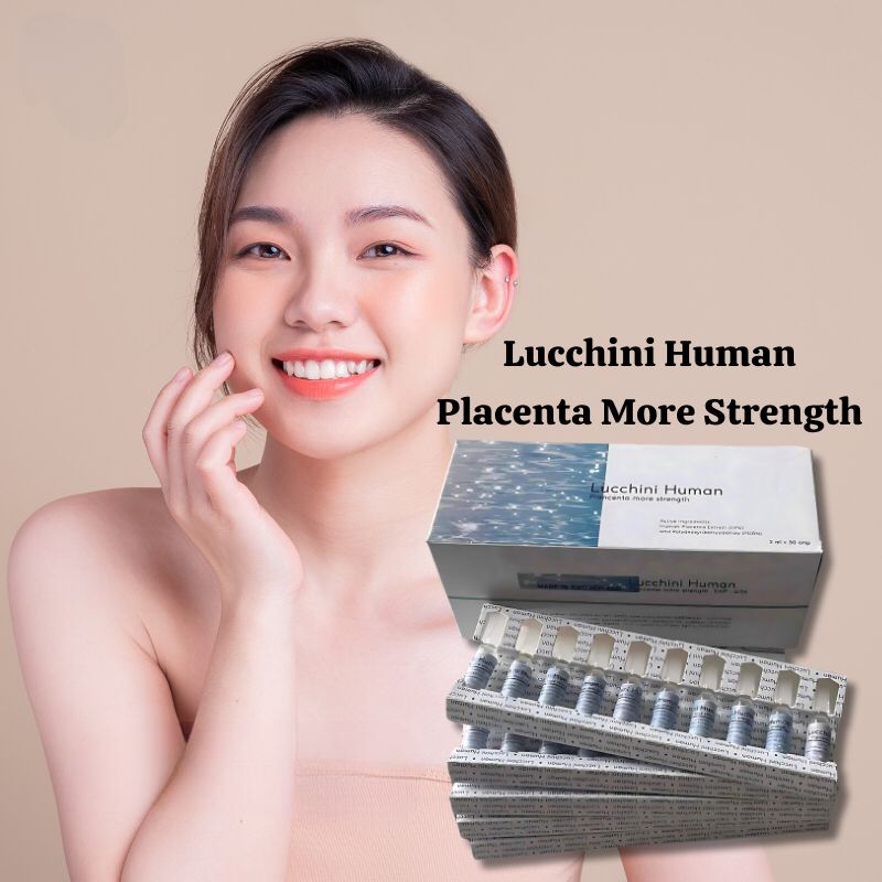 Lucchini Human Placenta More Strength is a product with human placenta extract (HPE) and polydeoxyribonucleotide (PDRN) thus making it an effective product. Ingredients in 2 ml, Human placenta contains active ingredients that helps to slow down aging, restore and nourish the skin of the body. These include hormones, proteins, fats, and nucleic acids. Glycosaminoglycans, amino acids and vitamins, minerals, Polydeoxyribonucleotide (PDRN) is an extract DNA level that helps restore and repair skin cells. It also helps to build collagen and reduce inflammation of the skin.