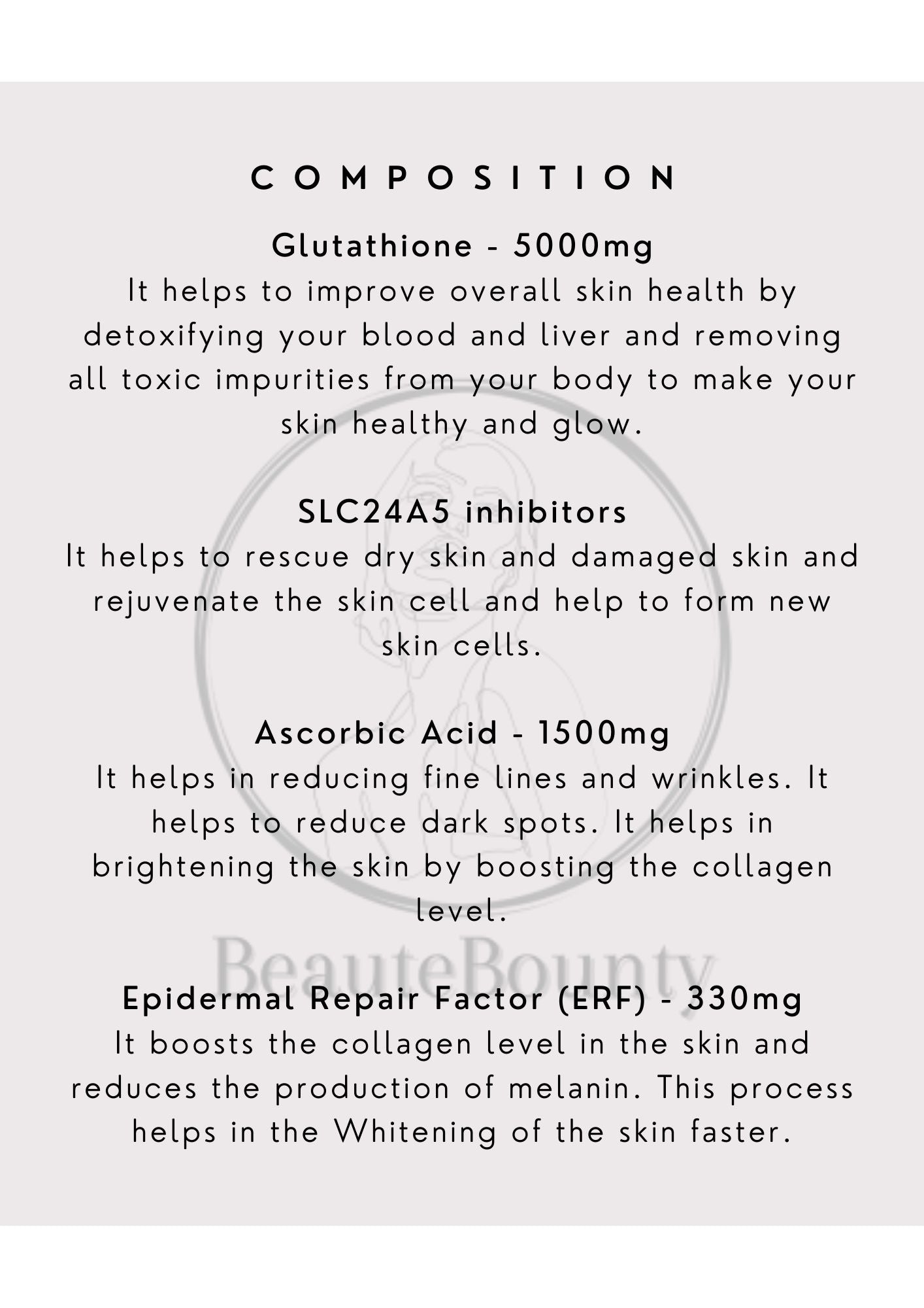 It boosts the collagen level in the skin and reduces the production of melanin. This process helps in the Whitening of the skin faster. -