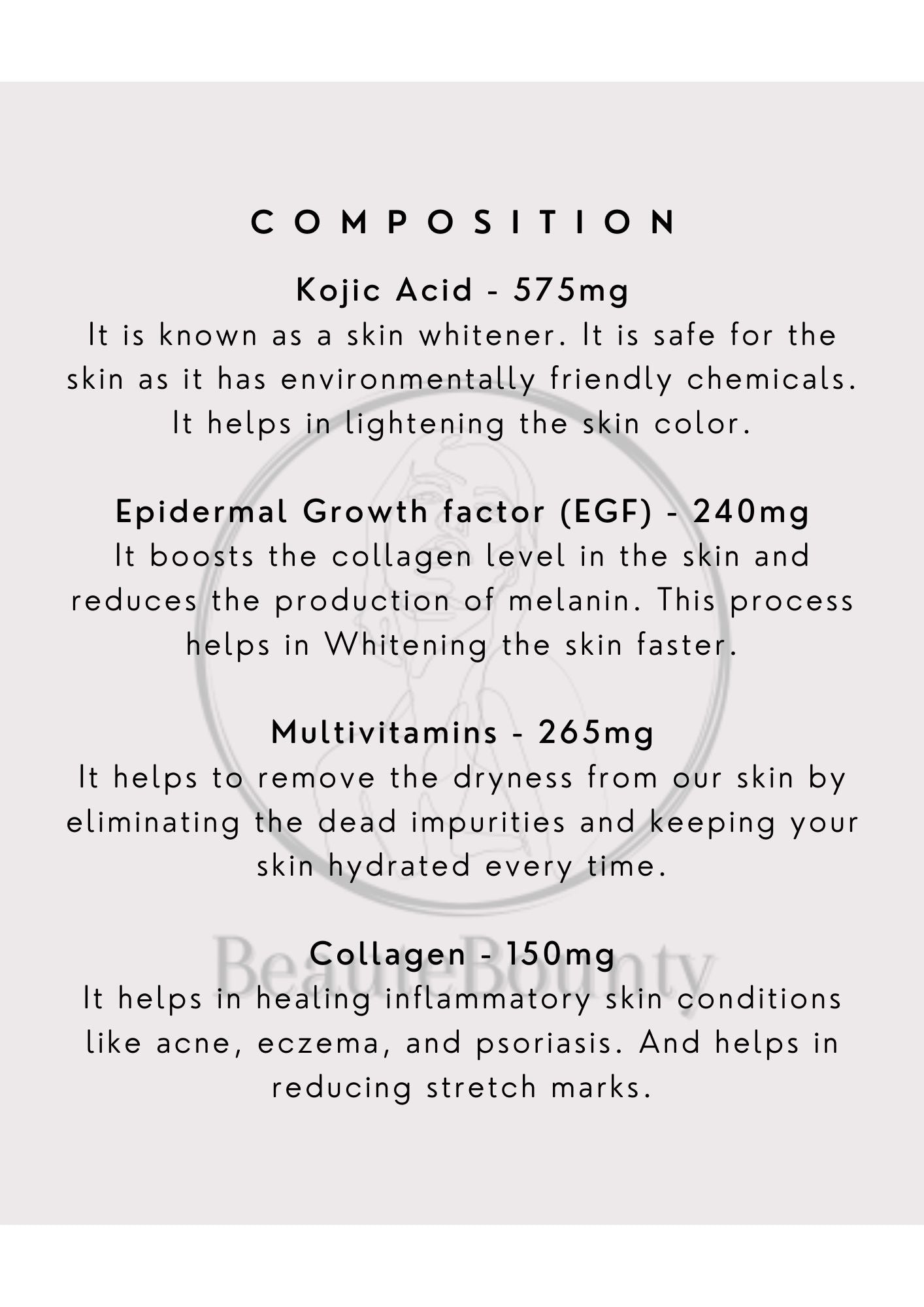 It boosts the collagen level in the skin and reduces the production of melanin. This process helps in Whitening the skin faster. -