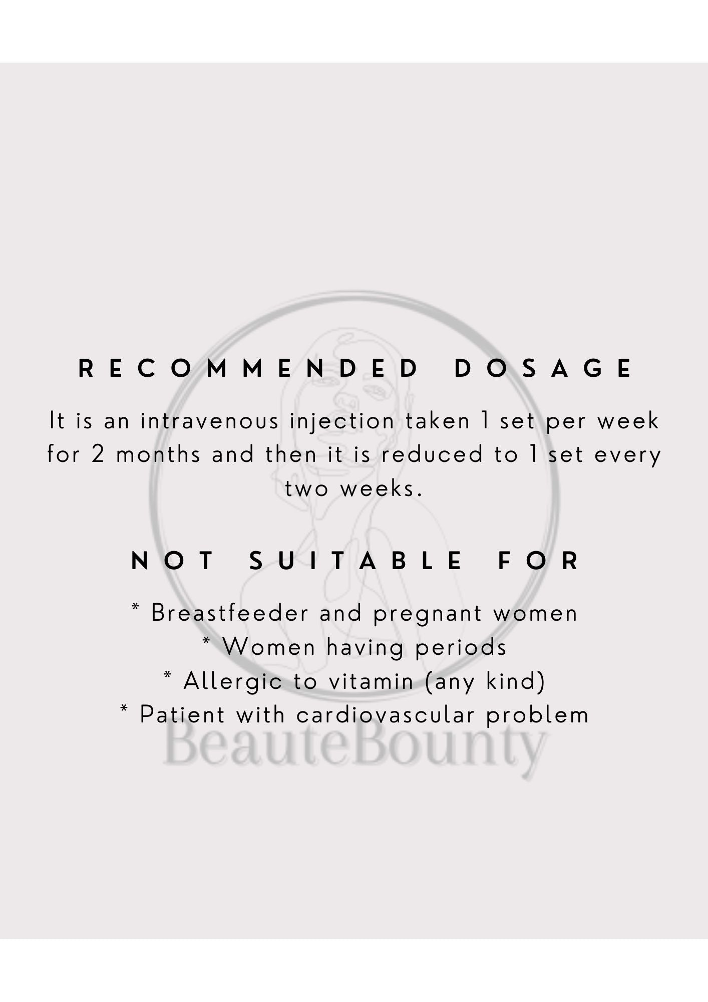 It is an intravenous injection taken 1 set per week for 2 months and then it is reduced to 1 set every two weeks.