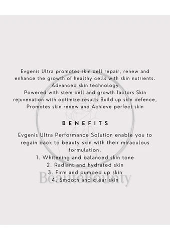 Evgenis Ultra promotes skin cell repair, renew and enhance the growth of healthy cells with skin nutrients.