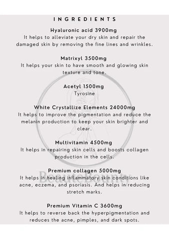 - White Crystallize Elements 24000mg-: It helps to improve the pigmentation and reduce the melanin production to keep your skin brighter and clear.