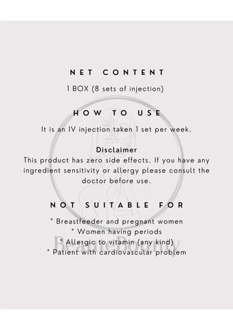 Recommendations for Dosage: It is an IV injection taken 1 Set per week
